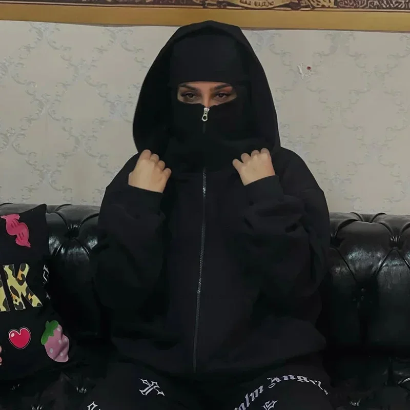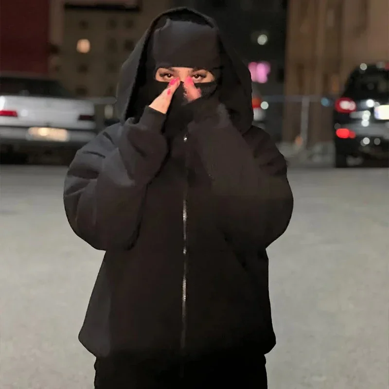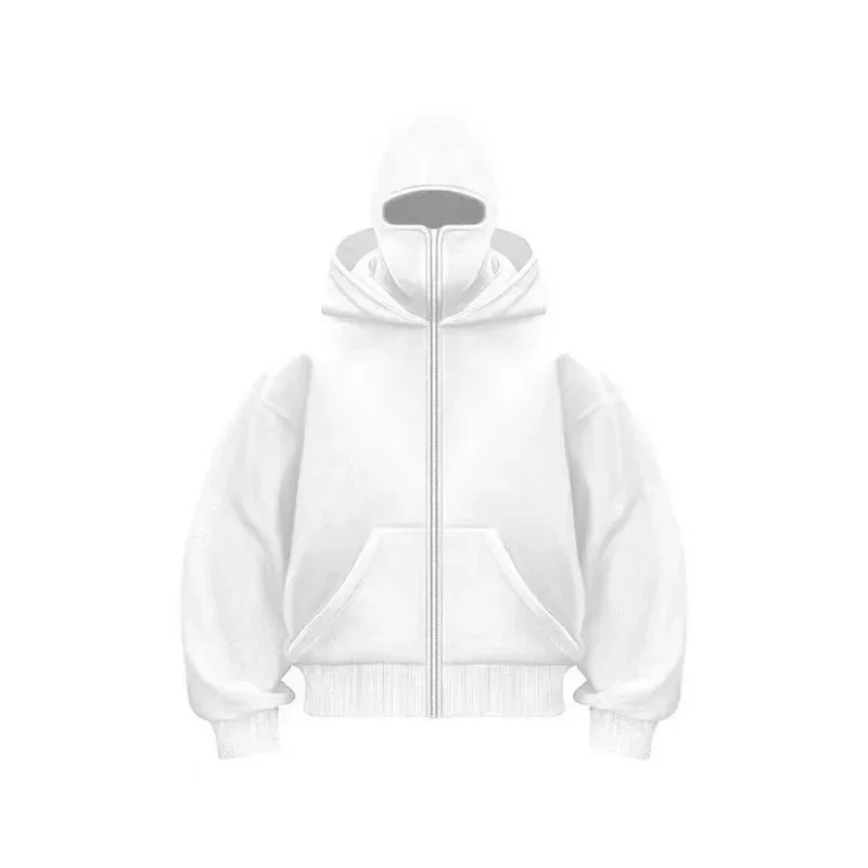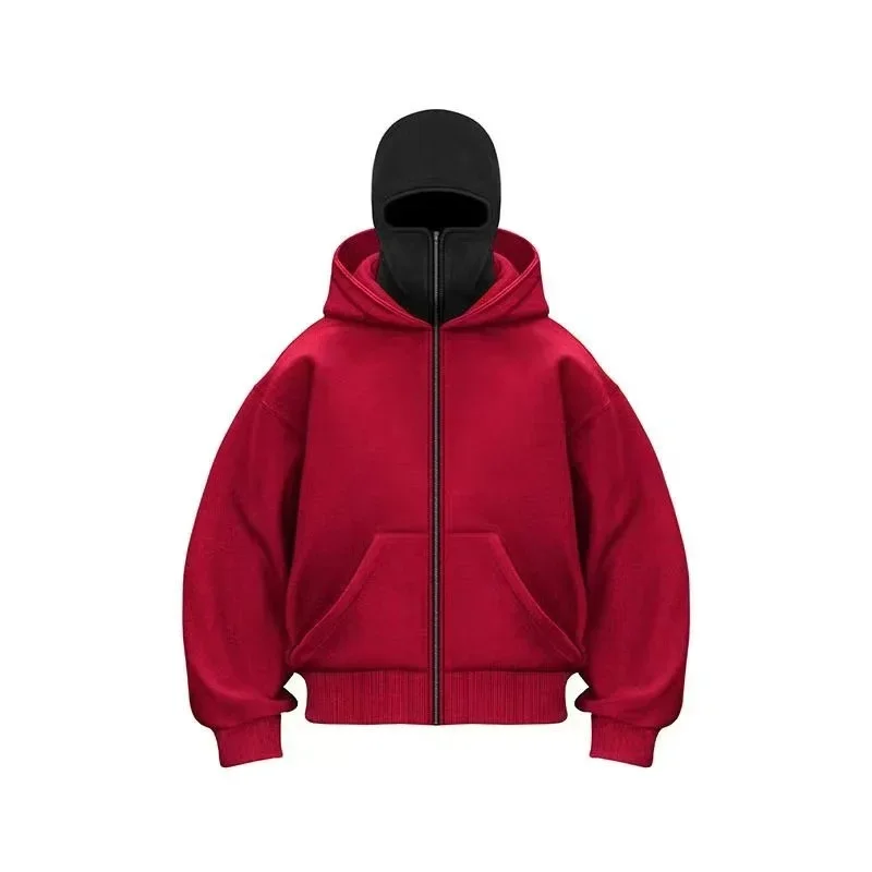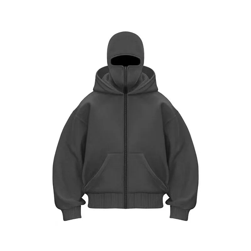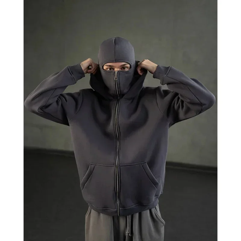 Balaclava Men Zip Hoodie Winter Warm Casual Sweatshirt Y2K with Hooded Face Mask Zipper Design Sports Jacket Outdoor Activities